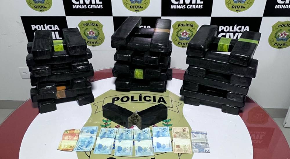 A Polícia Civil de Minas Gerais (PCMG) prendeu em flagrante, na última sexta-feira (21/2), em Montes Claros, no Norte do estado, dois homens, de 32 e 39 anos, suspeitos de tráfico de drogas. A operação de inteligência policial monitorava a remessa de entorpecentes entre Montes Claros e Espinosa, município distante mais de 270 quilômetros. Durante a abordagem, 45 barras da substância semelhante à maconha foram apreendidas dentro de uma mala.